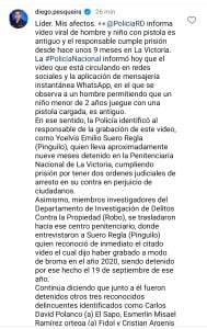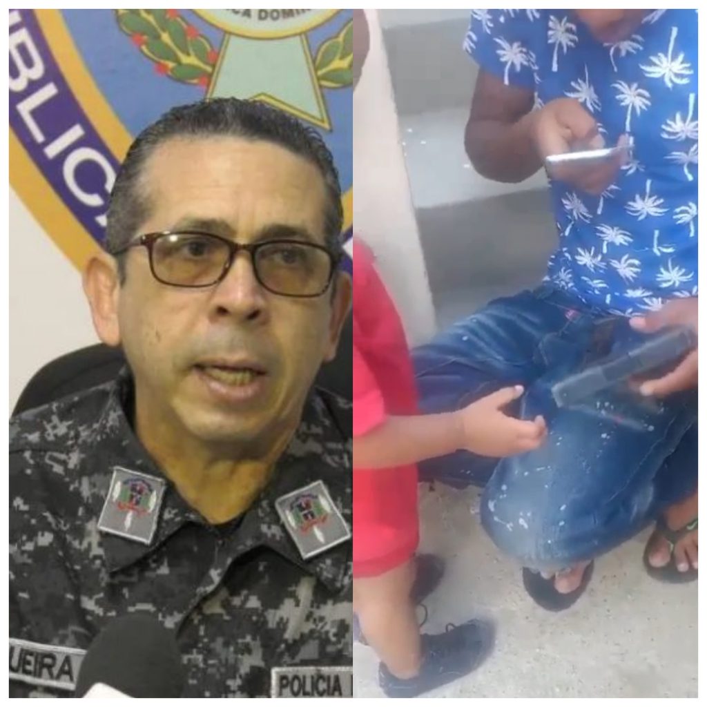 Santo Domingo-. El vocero de la Policía Nacional, Diego Pesqueira, aclaró que es antiguo el video viral en el que aparece un sujeto colocándole una pistola en las manos a un niño de dos años.