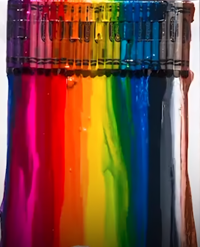 El video, compartido en redes sociales, muestra una caja de crayones de colores pegada a un cubo sobre una superficie blanca. A medida que pasan los minutos bajo la implacable luz del sol, se observa cómo los crayones comienzan a derretirse y deformarse, hasta quedar completamente convertidos en un líquido de colores.
