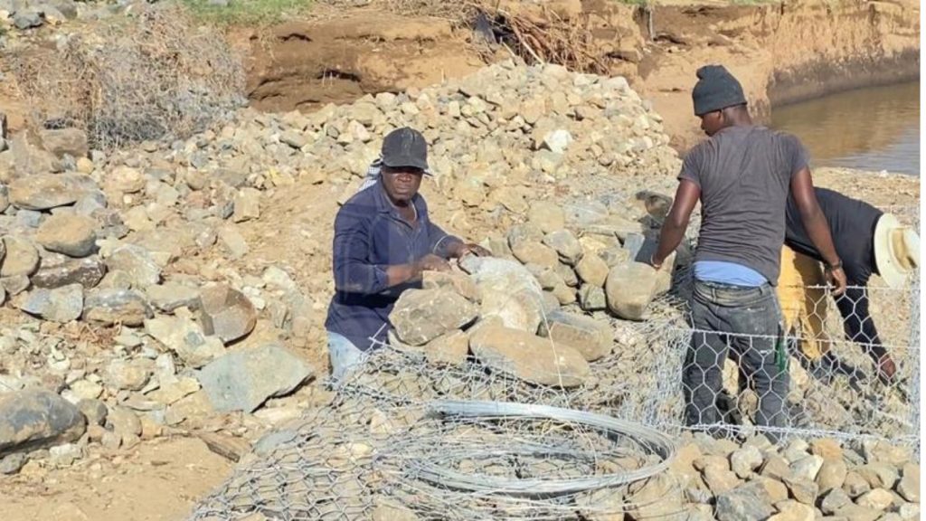 A pesar de los constantes daños que provocan las crecidas del río Masacre al canal haitiano en la frontera por Dajabón, ciudadanos de ese país desafían la fuerza de la naturaleza y construyen un muro de gaviones para evitar que las corrientes de agua se lleven otra vez parte de la obra.