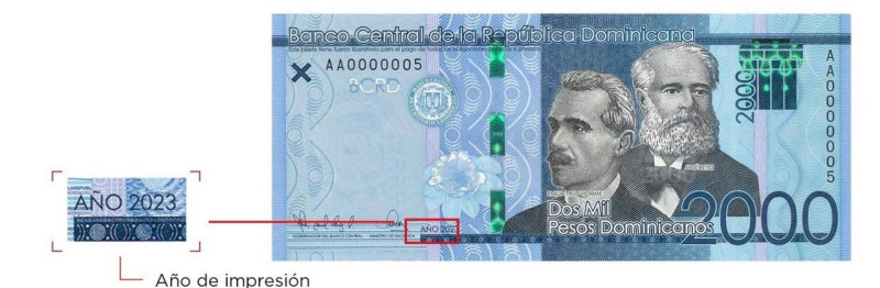 Los nuevos billetes de RD$2,000 y RD$1,000 conservan las mismas medidas de seguridad que los billetes de las mismas denominaciones que se encuentran en circulación actualmente. Estas medidas incluyen: