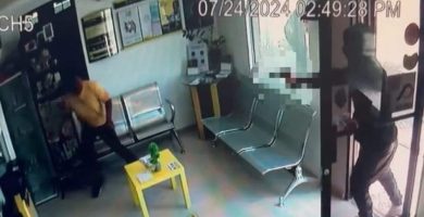 Momento en que asaltantes de Vimenca llegan a la sucursal en Laguna Salada